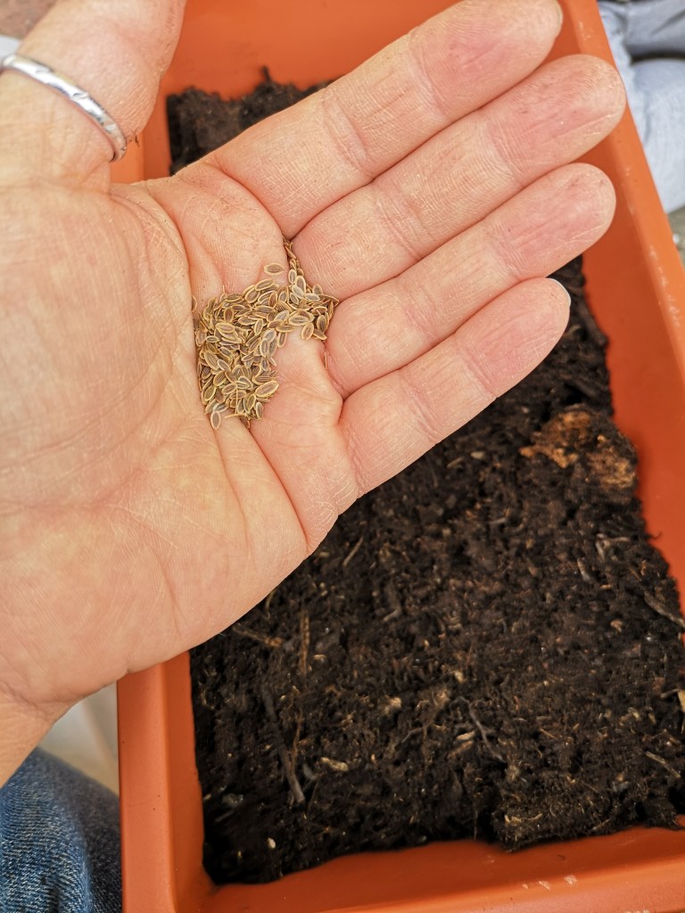 Oggi finalmente, il tempo ci ha regalato una mezza giornata di sole e io ne ho approfittato subito per iniziare a seminare qualcosa. Sto parlando di ANETO e dell’ERBA CIPOLLINA. Ho fatto in vaso perche’ sono due erbe aromatiche che preferisco tenere a portata di mano, probabilmente le terro’ sul balcone comode all’uso. Non so’ voi ma io le uso tantissimo tutto l’anno. Sono le uniche due che semino, le altre, in genere le ricompro se non mi durano.