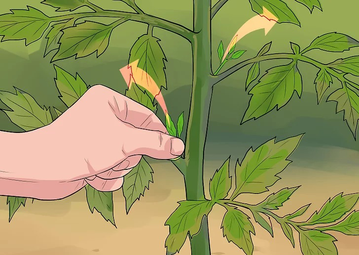Bisogna togliere, delicatamente, i germogli che nascono all’ascella fogliare. Queste vanno tolte prima che raggiungano i 3 Cm di altezza.