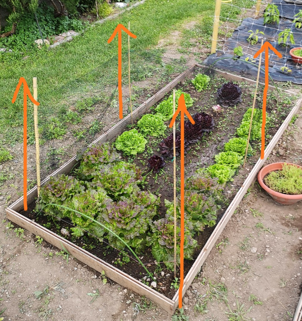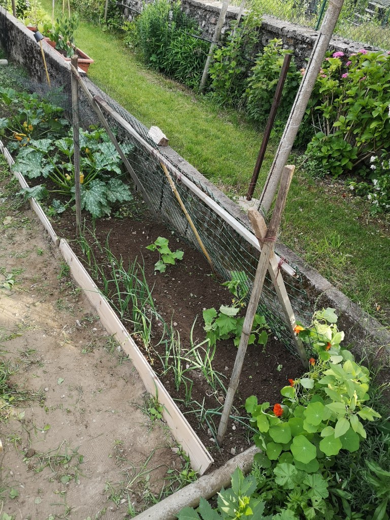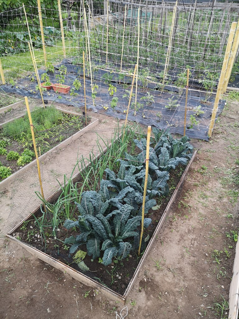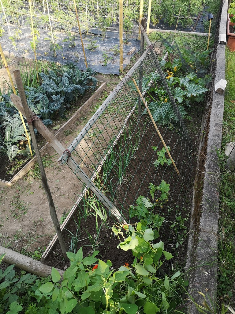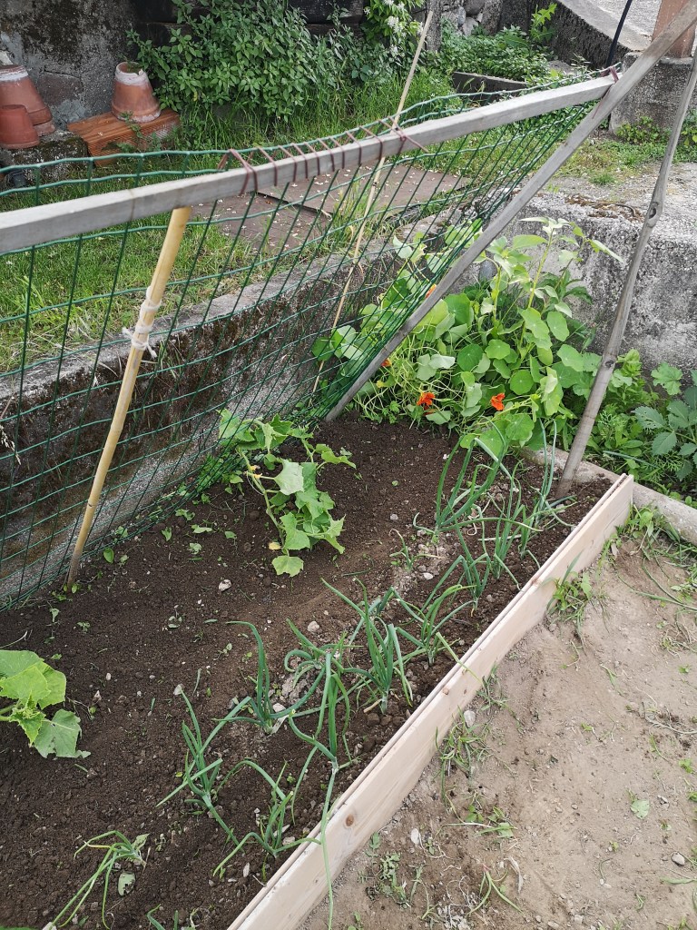 Un’altra cosa che si e’ resa necessaria fare e’ stata quella di alzare le strutture delle reti dei tre box. La tre vasche centrali con dentro le piante. Le piante stanno crescendo molto, soprattutto i peperoni, le cipolle e il cavolo nero. Le foglie rimanevano schiacciate o incastrate nella rete, rischiando di rompersi.