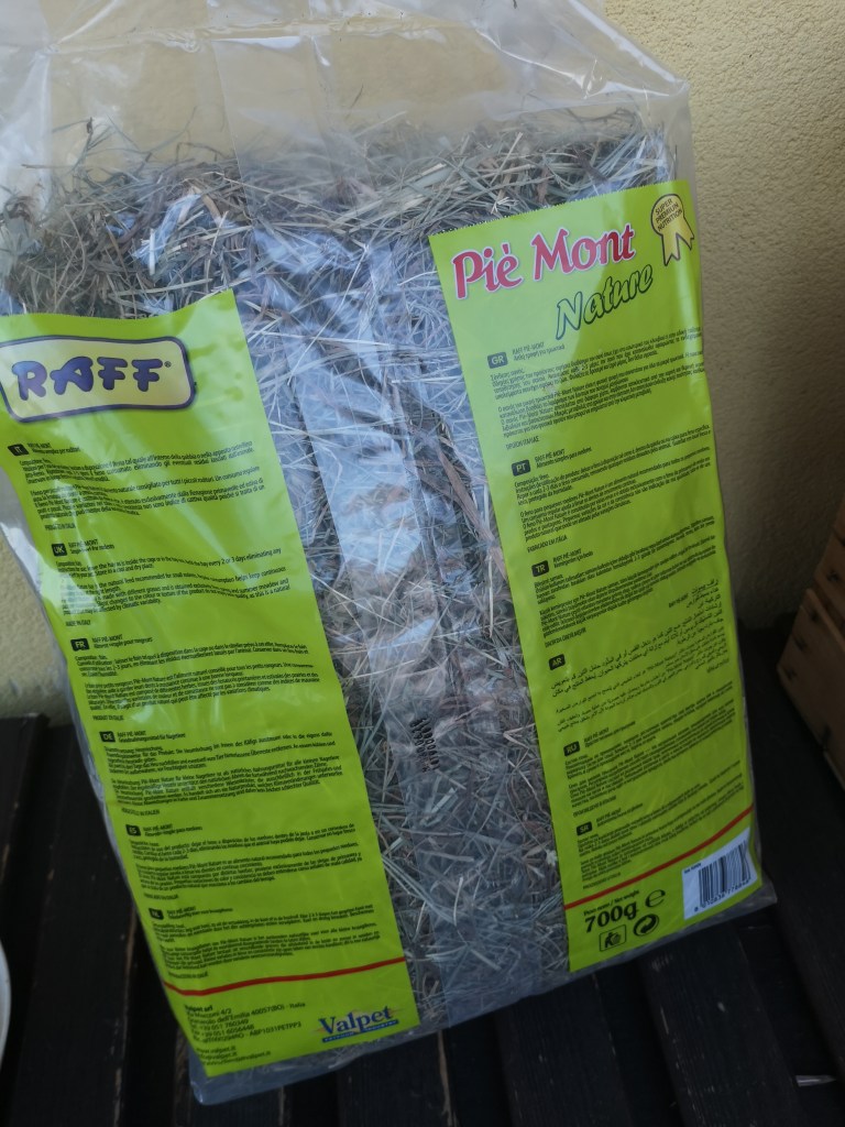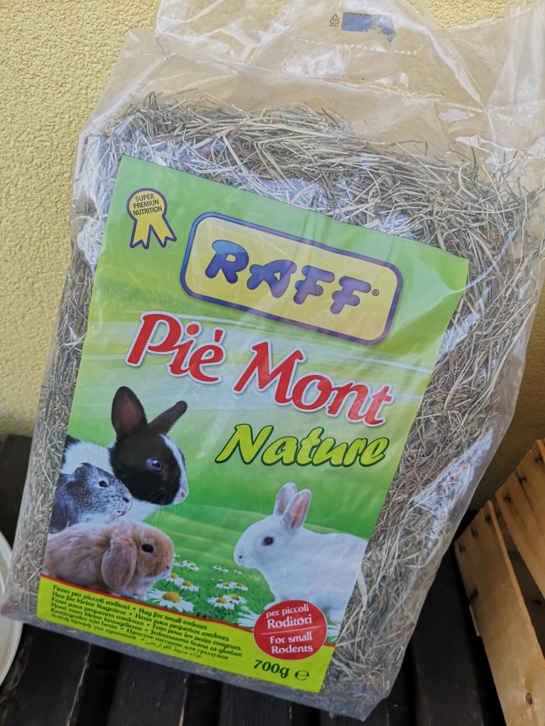 Per quanto riguarda il fieno, non avendo la campagna, non conoscendo nessuno che ha animali che ne fanno uso, mi sono arrangiata con una soluzione molto semplice e molto economica.