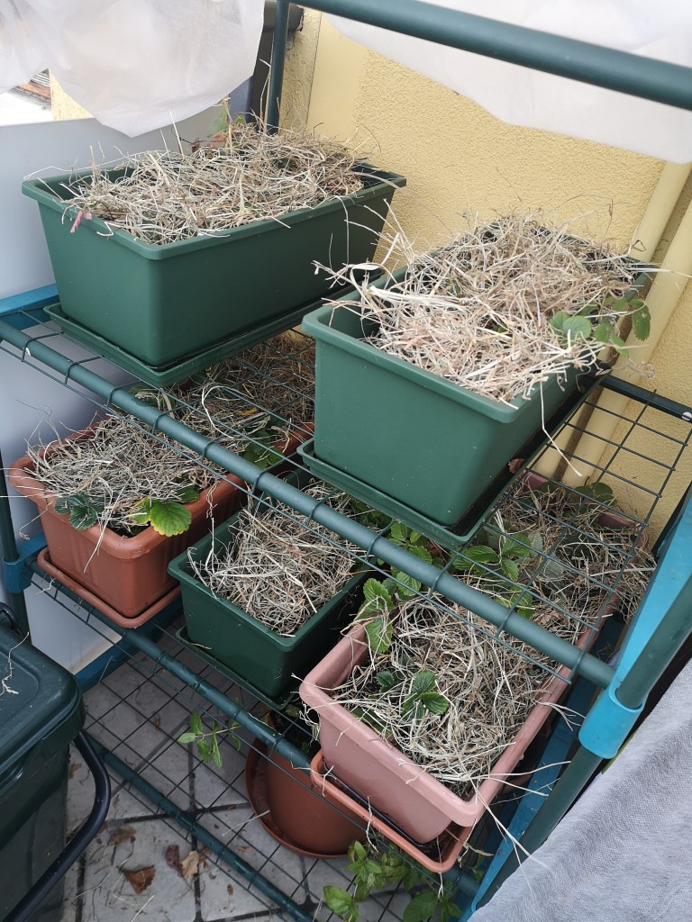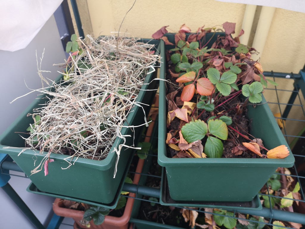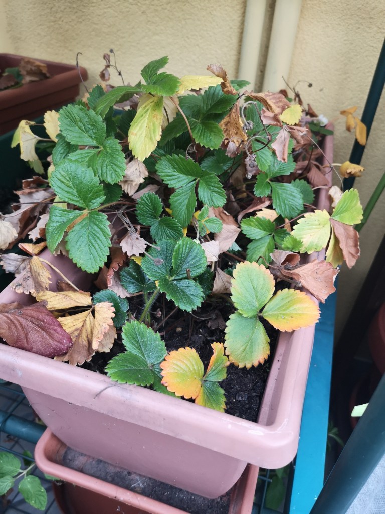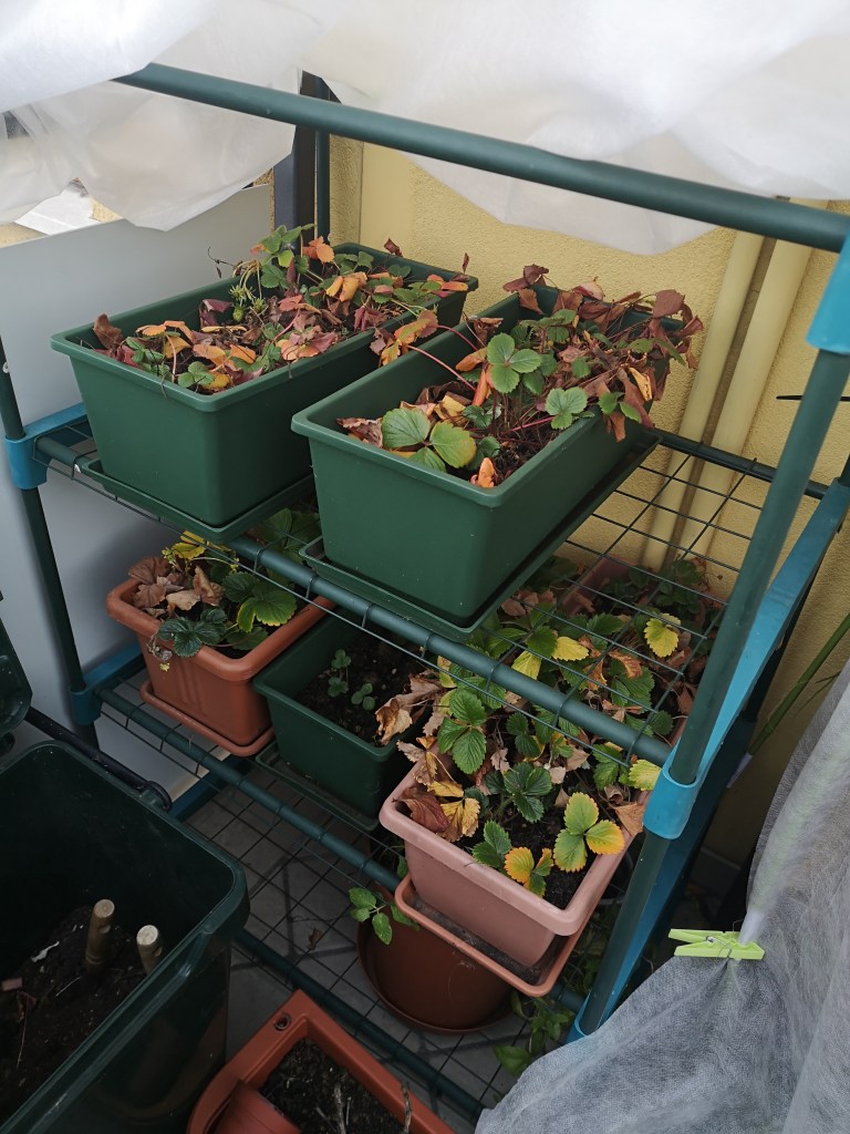 Tra queste, ho un sacco di piantine di fragole, che possiedo da anni e ogni inverno ho premura di farle sopravvivere per tutto il periodo freddo.