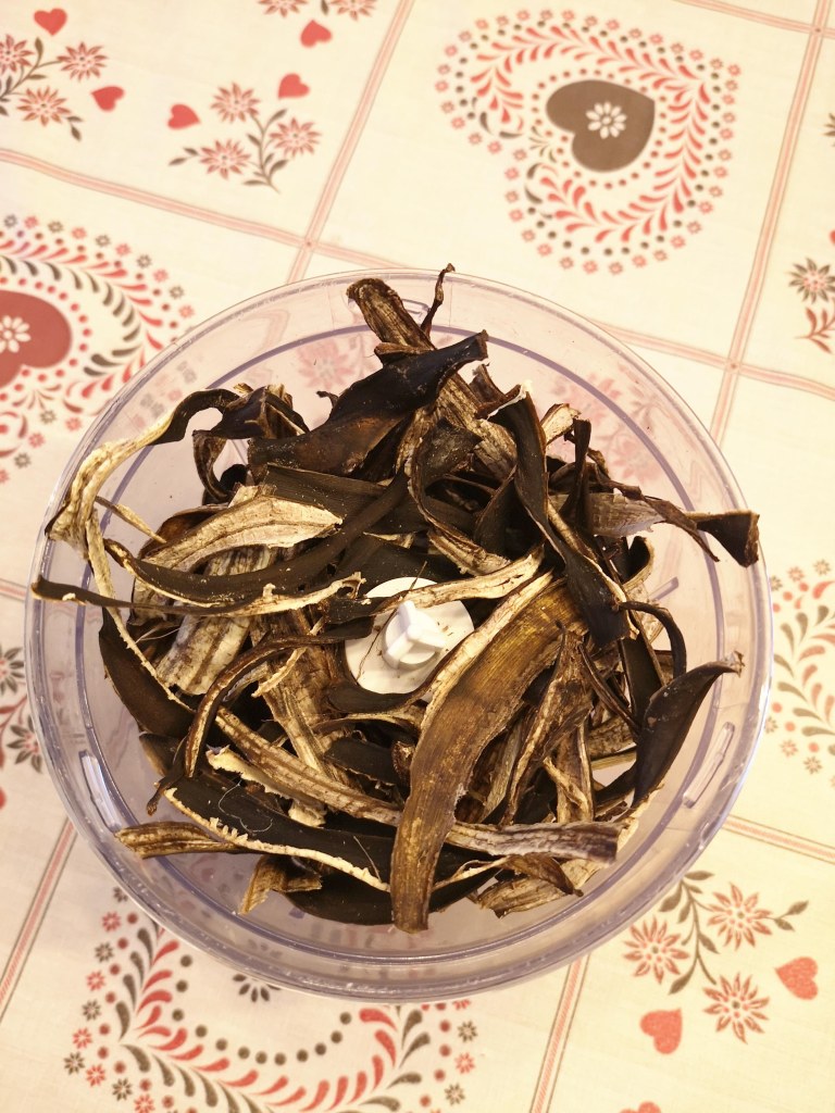 Io trovo questa soluzione molto comoda, in quanto mi permette di avere sempre la mia scorta in casa anche quando non ho le banane. Occupa poco volume ed e’ molto concentrato. Non ho secchi di acqua in giro che in inverno puzzerebbe se stessero in casa o ghiaccerebbe se stessero fuori. Inoltre, con questa grana cosi’ sottile, e’ piu’ facilitato e velocizzato l’assorbimento alle radici.