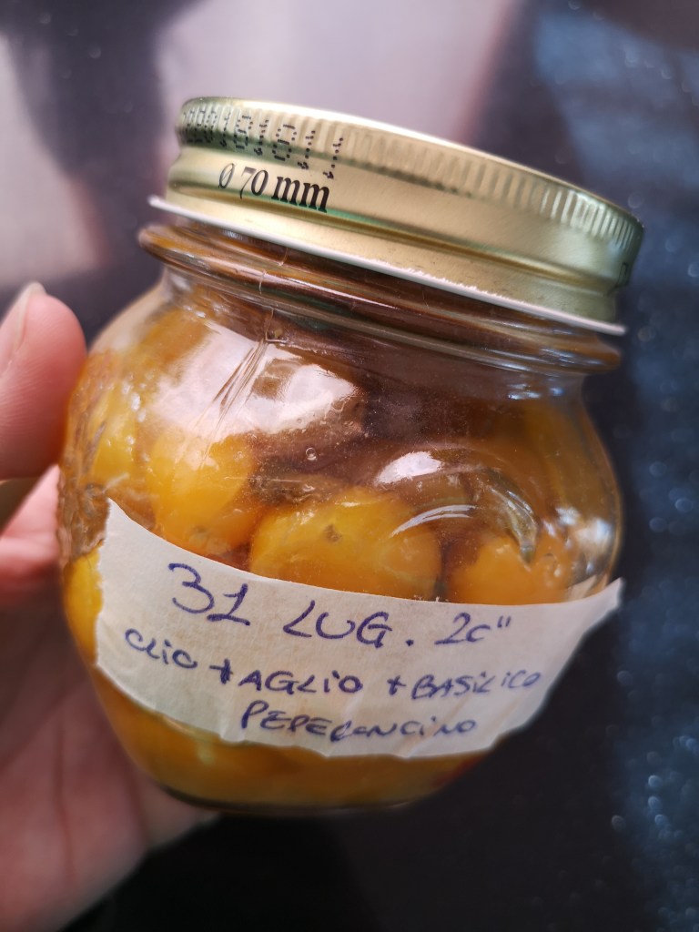 Inutile ripetere che la “soluzione” pomodorini in vasetto mi salva sempre!!! Con pasta, carne, pesce, o semplicemente su un buon pane bruschettato (magari il mio 😉 ) o con una buona mozzarella….. La soluzione e’ sempre pronta!!