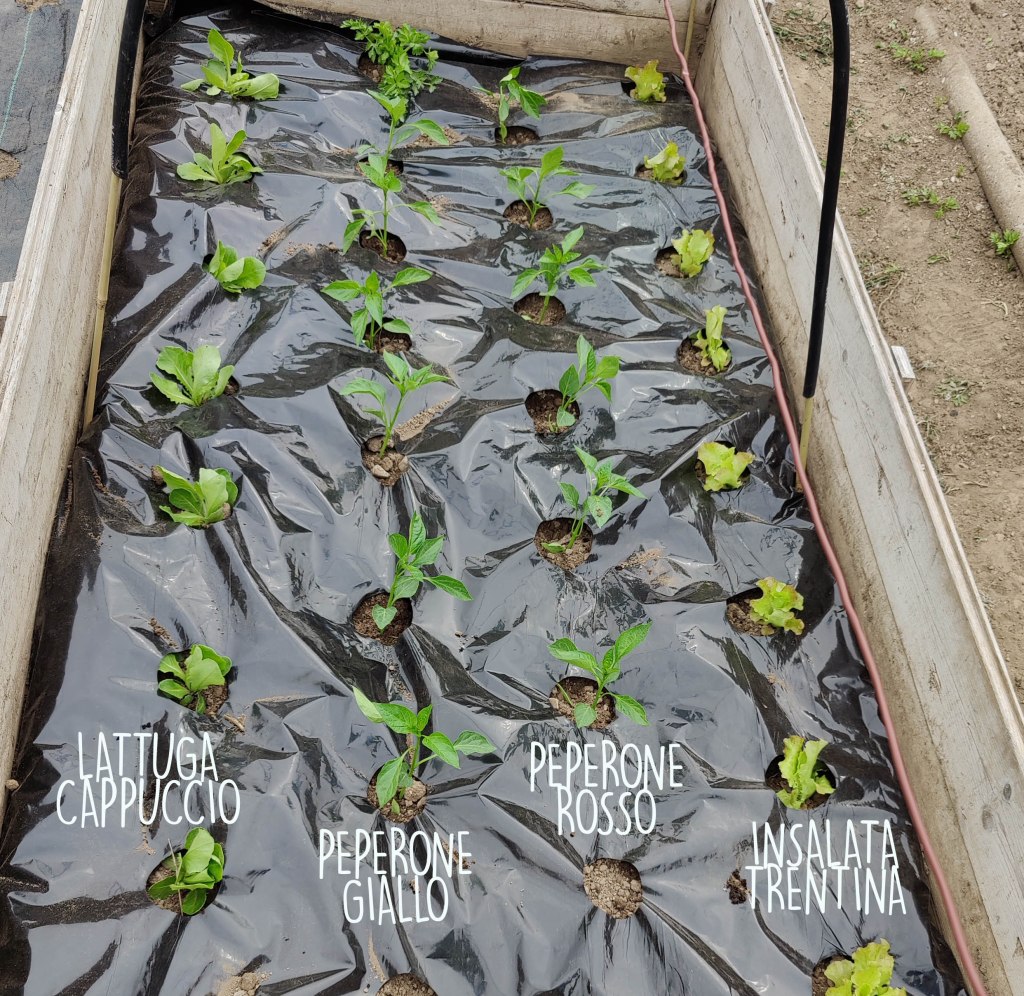 Infine ho inserito le piantine di insalata e peperoni nei fori.