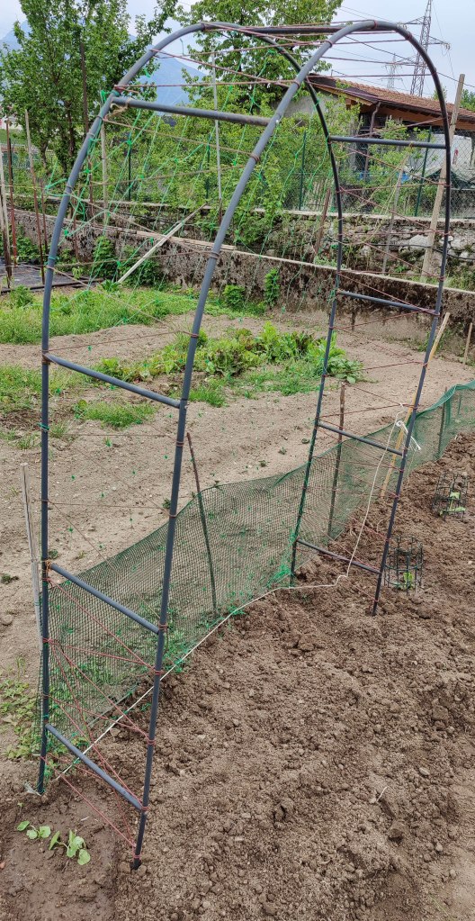 Fatto questo, ho pensato bene di riutilizzare l’arco dello scorso anno come struttura per i piselli rampicanti che ho seminato in semenzaio.