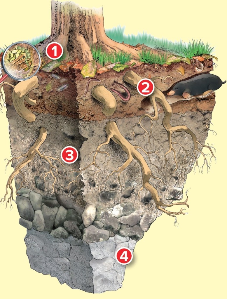 Tutto questo ha una sua logica e spesso e’ ben spiegata. Se noi guardiamo gli strati del terreno, capiamo di che natura sono, ed eventualmente, gli animali/insetti che lo vivono, tutto diventa molto piu’ chiaro.