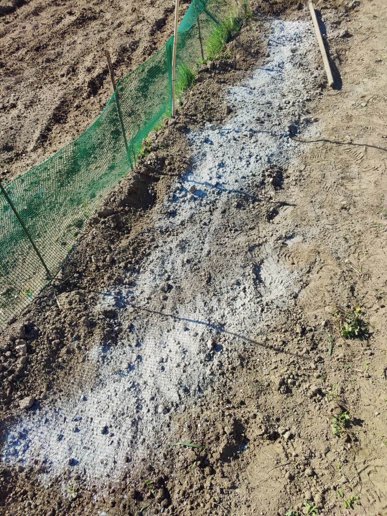 Una ulteriore lavorazione e’ stata quella di zappatura… per disossare meglio il terreno. Inoltre ho approfittato di questo secondo passaggio, per incorporare al terreno, della cenere che avevo del nostro camino, ottimo fertilizzante e del concime.