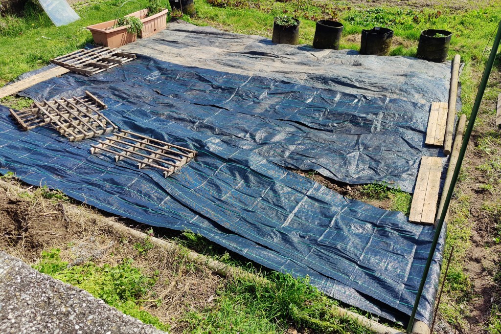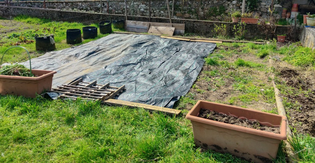 Poi con i teli da pacciamatura, ho definito per bene la mia zona.