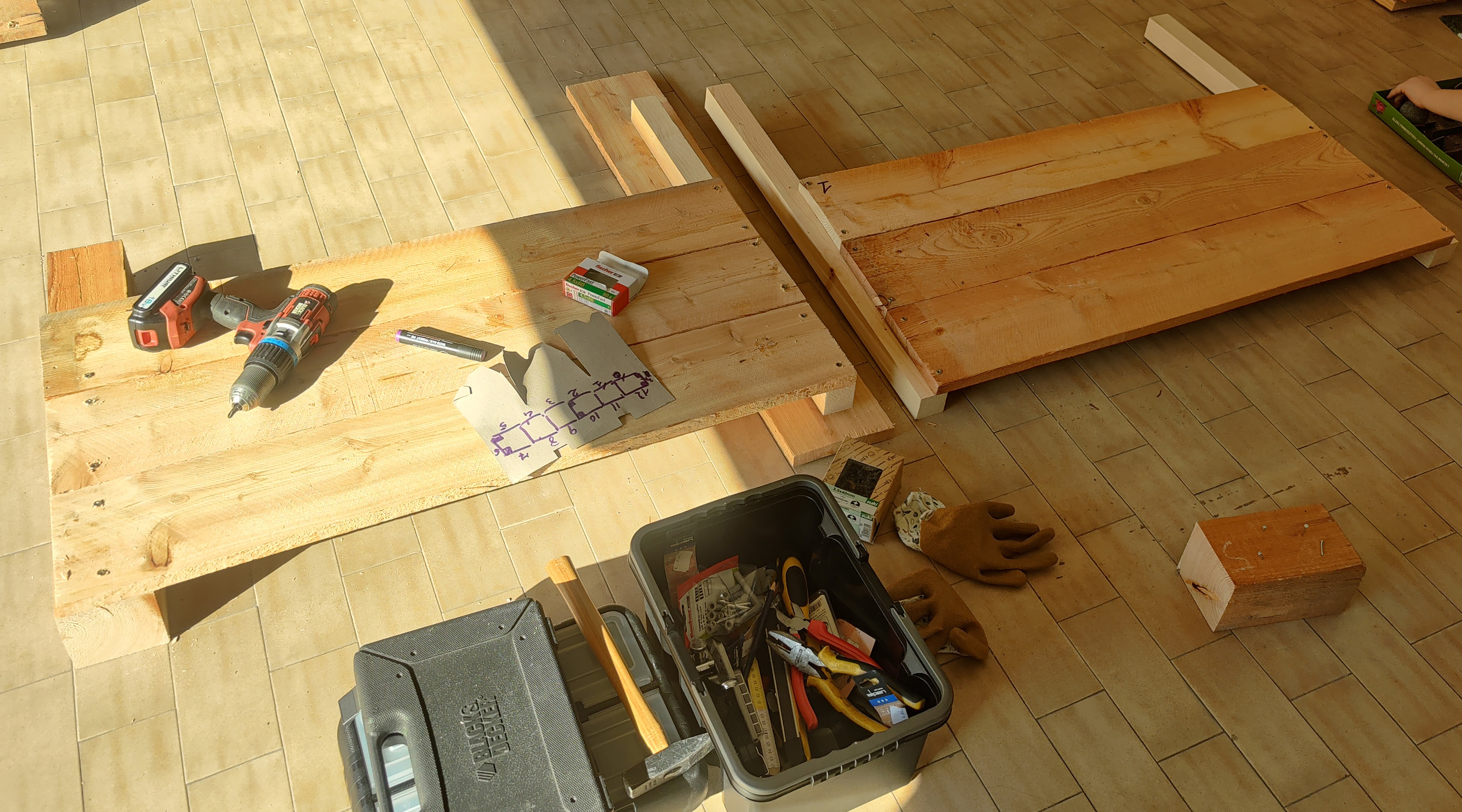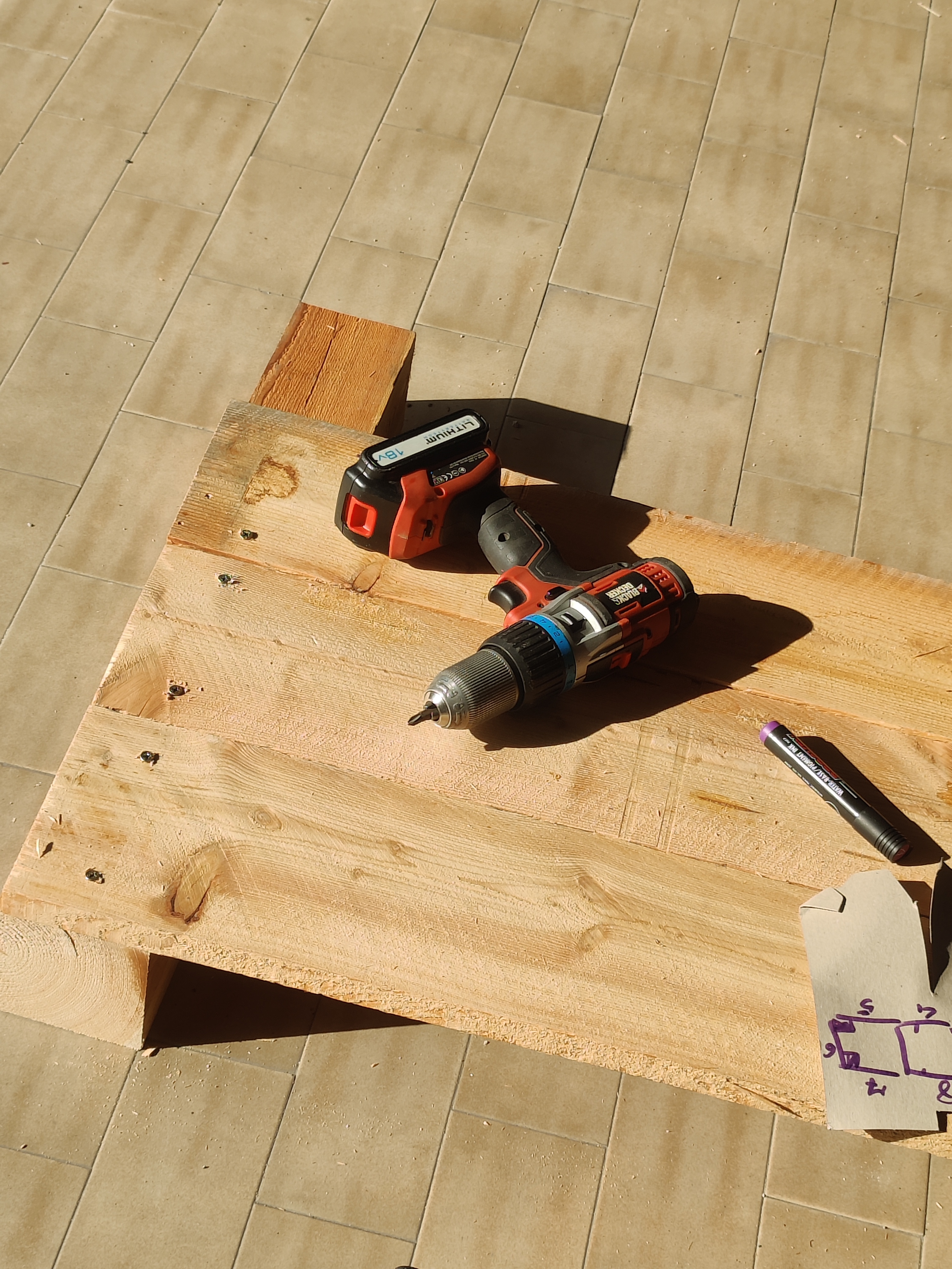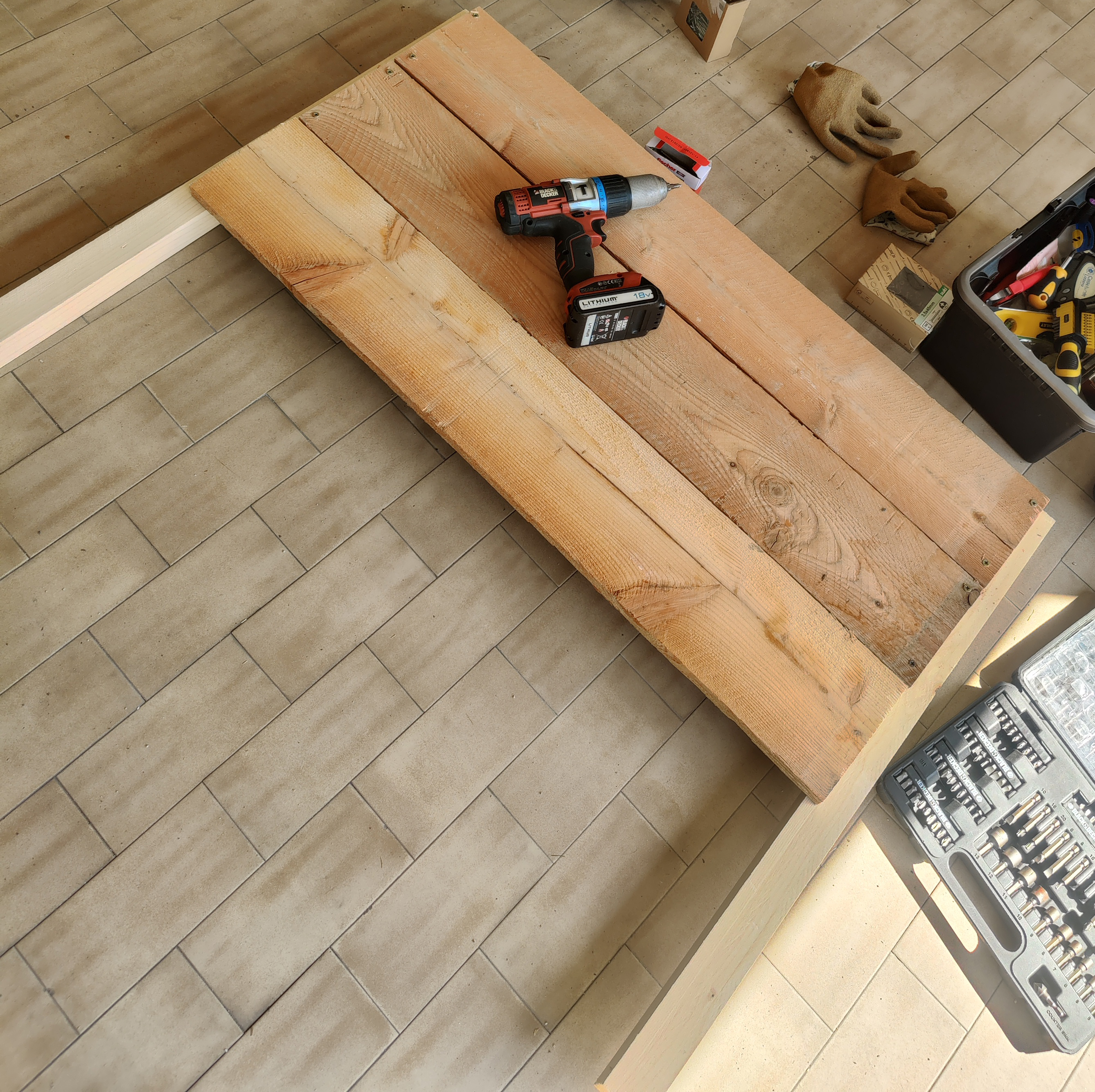 Comincio ad assemblare e avvitare. Per fortuna erano belle giornate, caldine, e si stava bene fuori.
