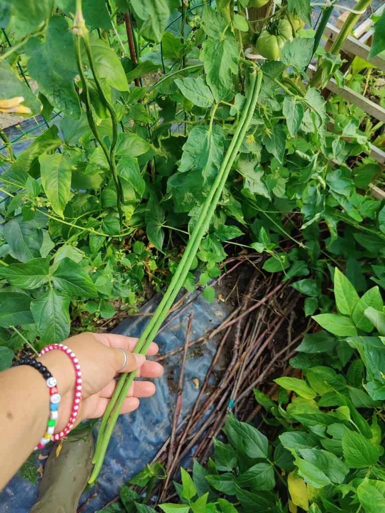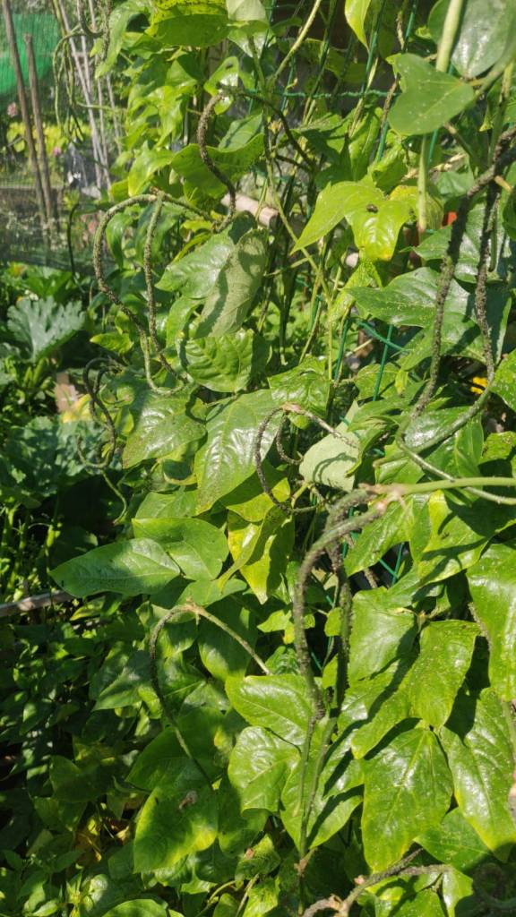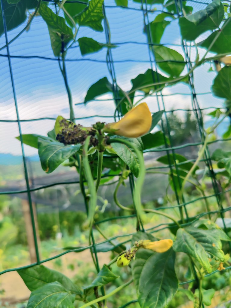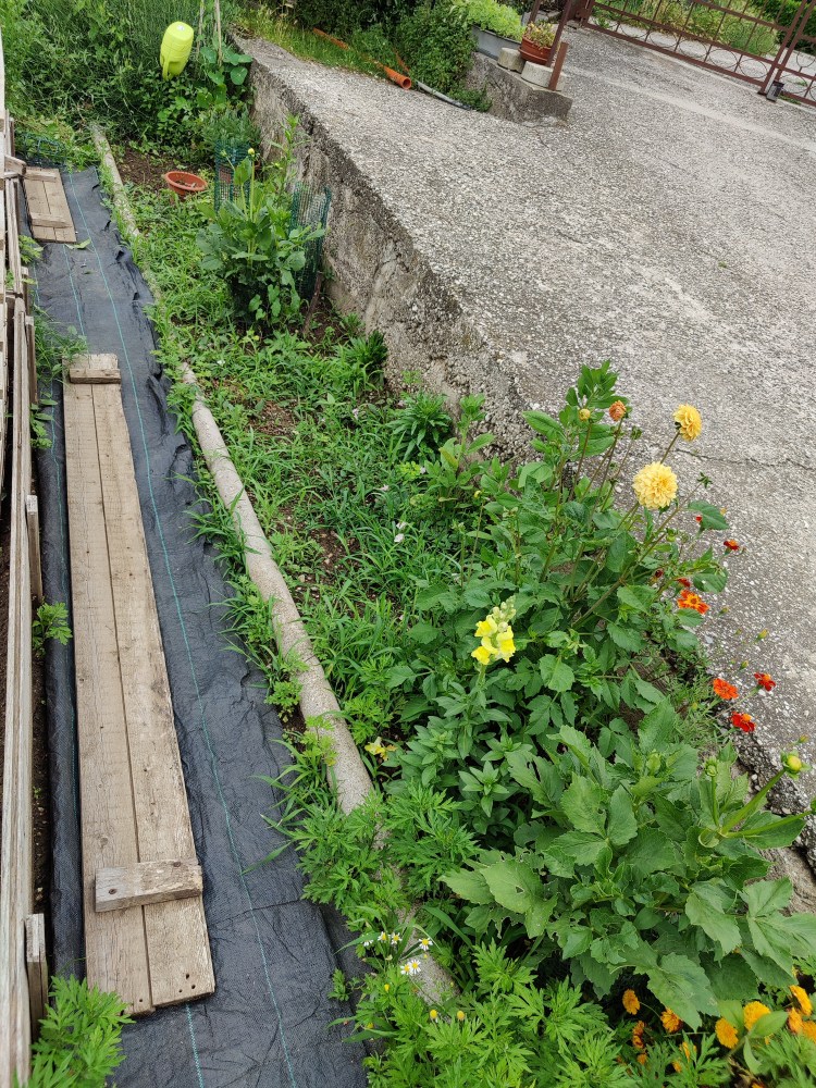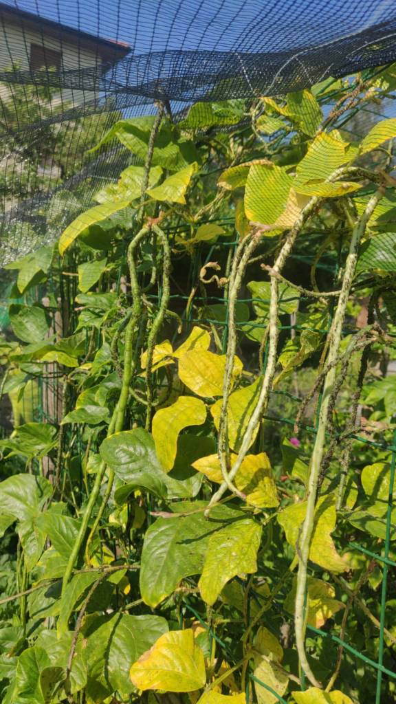 Come vedete non serve gran che’, tutte cose facilmente reperibili ed economiche. Io ho anche recuperato tanto materiale, degli scorsi anni. Ho ricreato il box con le assi che ho da sempre (perche’ ogni fine stagione, li smonto per riuscire a , metterli via. Ho messo dei paletti laterali, ben piantati a terra, nei quali sono andata a il filare le porzioni di tubo nero(quello per le irrigazioni per farvi capire meglio), creando cosi’ un arco. Li ho fissati ulteriormente bene tra loro, tramite canna di bambu’, alla quale li ho legati tramite nastro. Tutto questo per cercare di dare stabilita’ e reristenza alle bufere di vento, che qui capitano spesso.