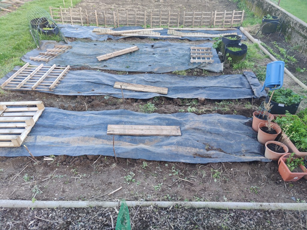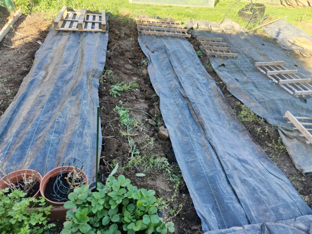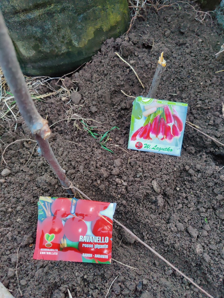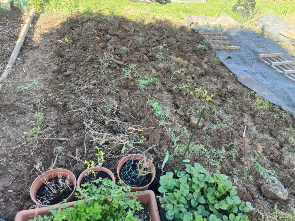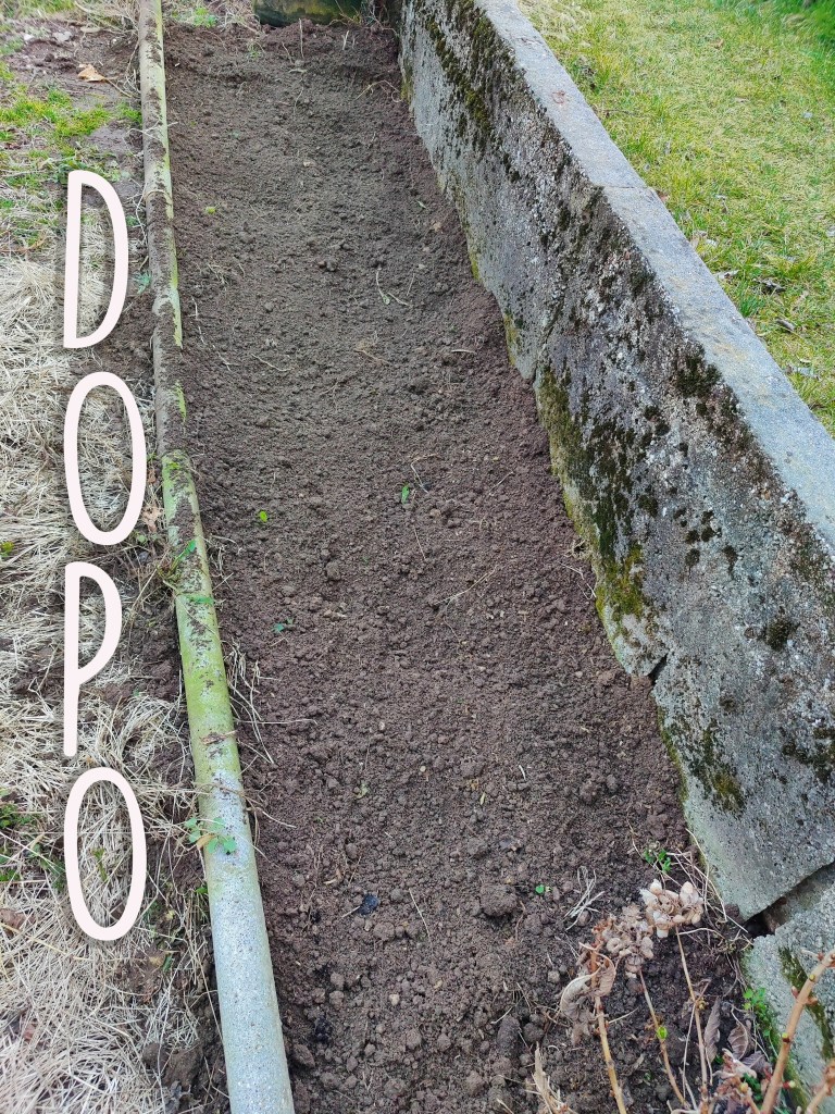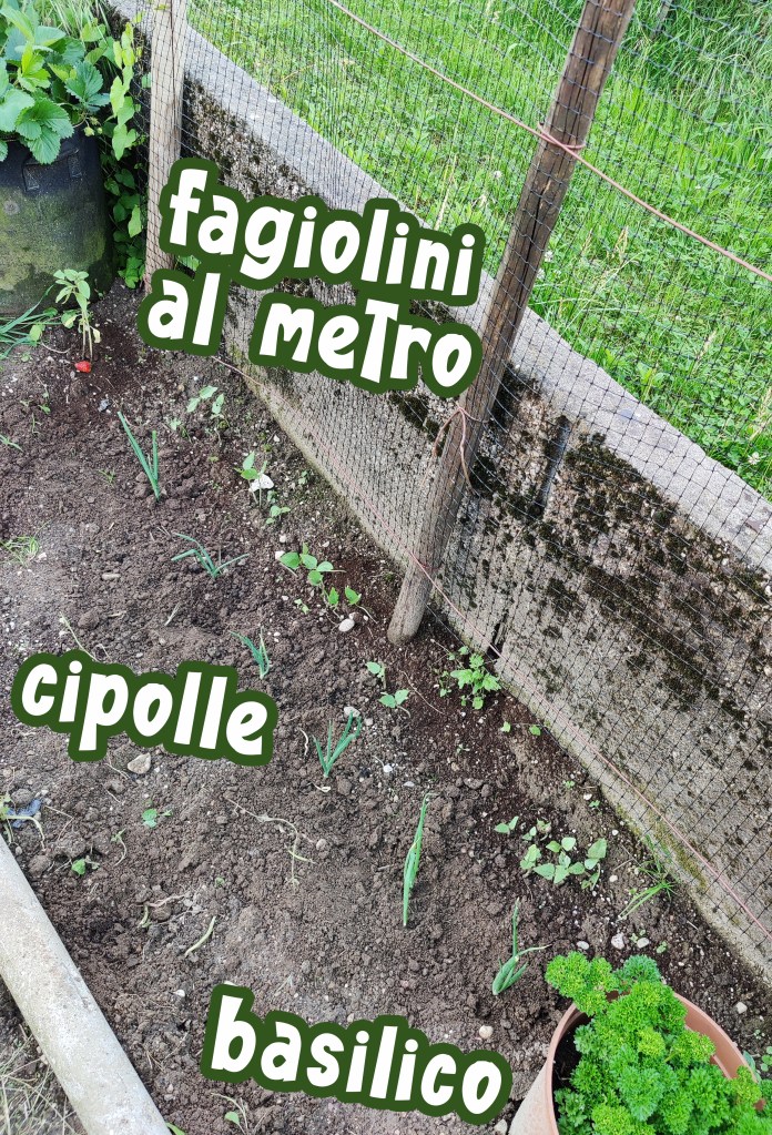 Ok ci siamo, il terreno e’ stato zappato, concimato per bene con dello stallatico pellettato, quello con la struttira di piccoli bastoncino, per farvi capire…