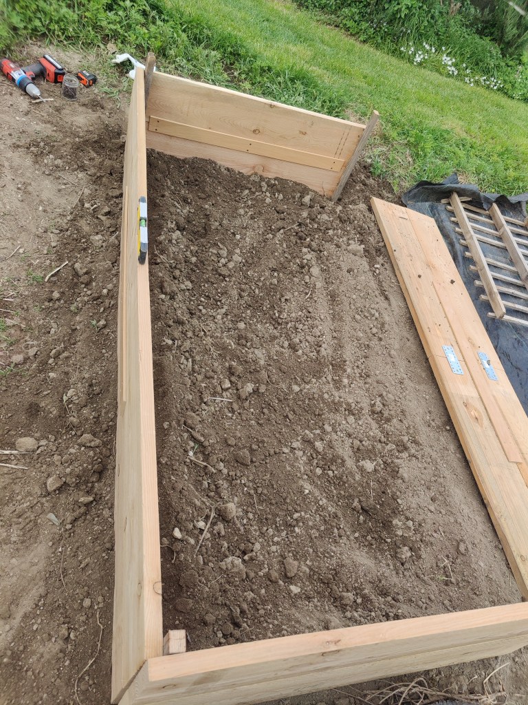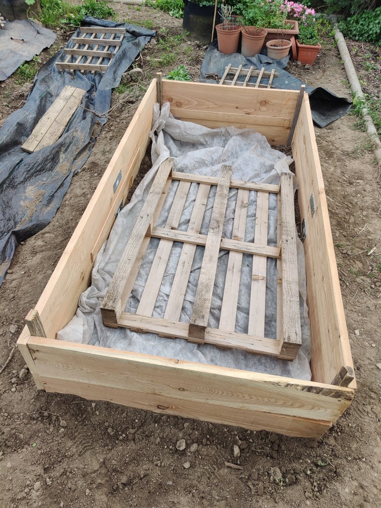 I primi box sono stati sistemati e posizionati a terra, cominciamo a interrare le prime piantine.