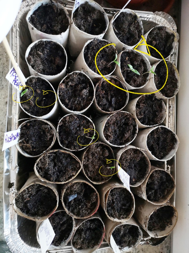 Alla fine, se considerate che ho seminato il 5MARZO, oggi mi ritrovo 7/8 germogli….. non c’e’ voluto cosi’ tanto, anche senza lampada. Probabilmente ho trovato la zona giusta, in cui mettere il semenzaio.