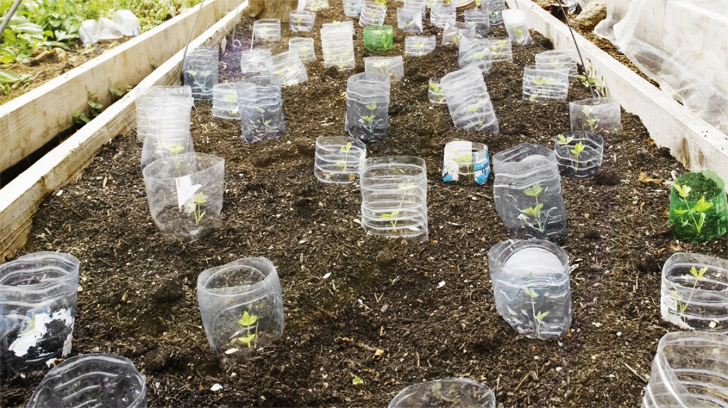 Una cosa su cui mi sono informata molto durante l’inverno, e’ come salvaguardare piante, frutta e verdura dell’orto nelle fasi piu’ delicate. In questo momento per me e’ la messa a terra di giovani piante, dal fusto ancora fragile, delicato, facile preda di uccelli o lumache. Navigando in rete mi sono imbattuta in questa foto…..