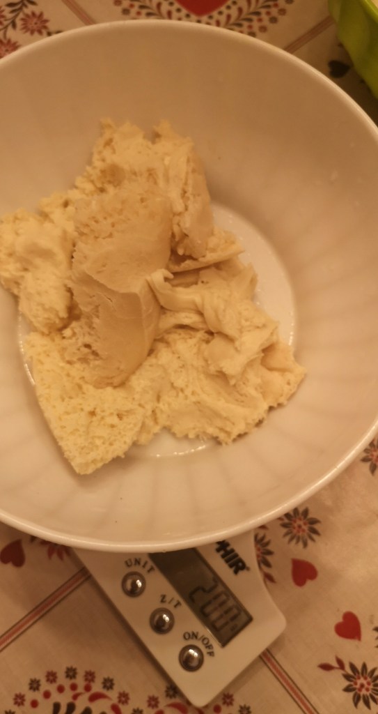 Passate le 48 ore, riprendete il vostro Starter e gliene togliete 200 gr. Vi troverete una consistenza viscida, che ricorda molto il Vinavil, molto appiccicosa. Farete fatica a toglierlo dal vaso, per questo ve ne consiglio uno com bocca larga ma, piano piano ci si riesce. Davanti a voi quindi ora avete il composto iniziale, da cui avete TOLTO 200 gr di porzione. Ora aggiungete 200gr di farina nuova e 100gr di acqua tiepida. La seconda sempre un po’ per volta. Impastate bene, sempre per 5/10 minuti e riponetelo nel vaso. Coprite con garza umida, questa impedira’ di fare subito la crosta.