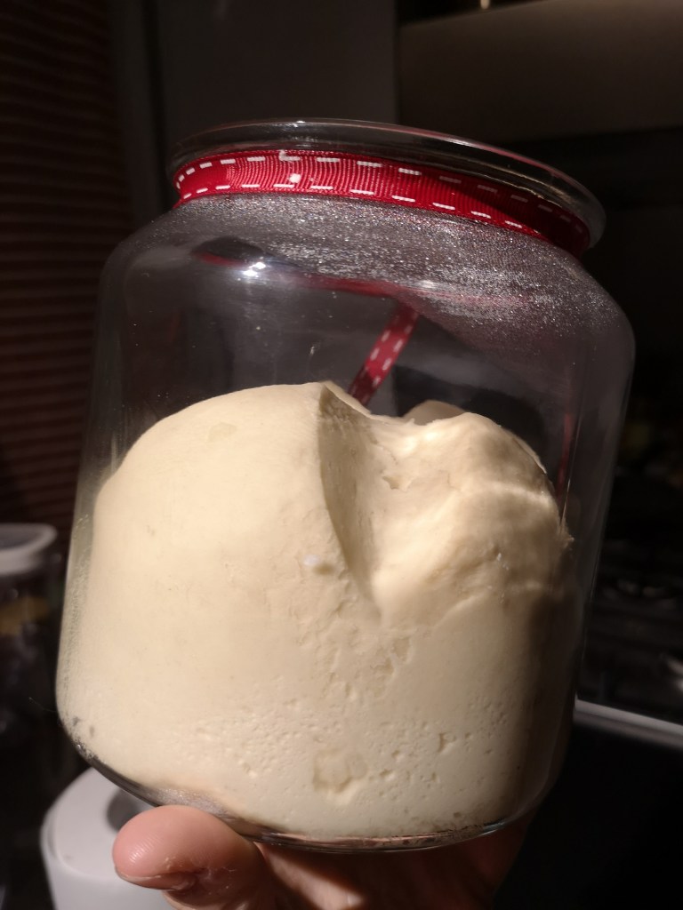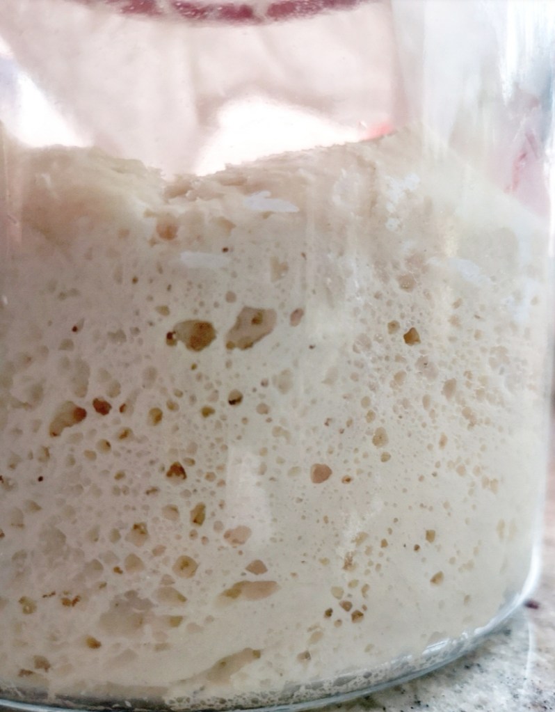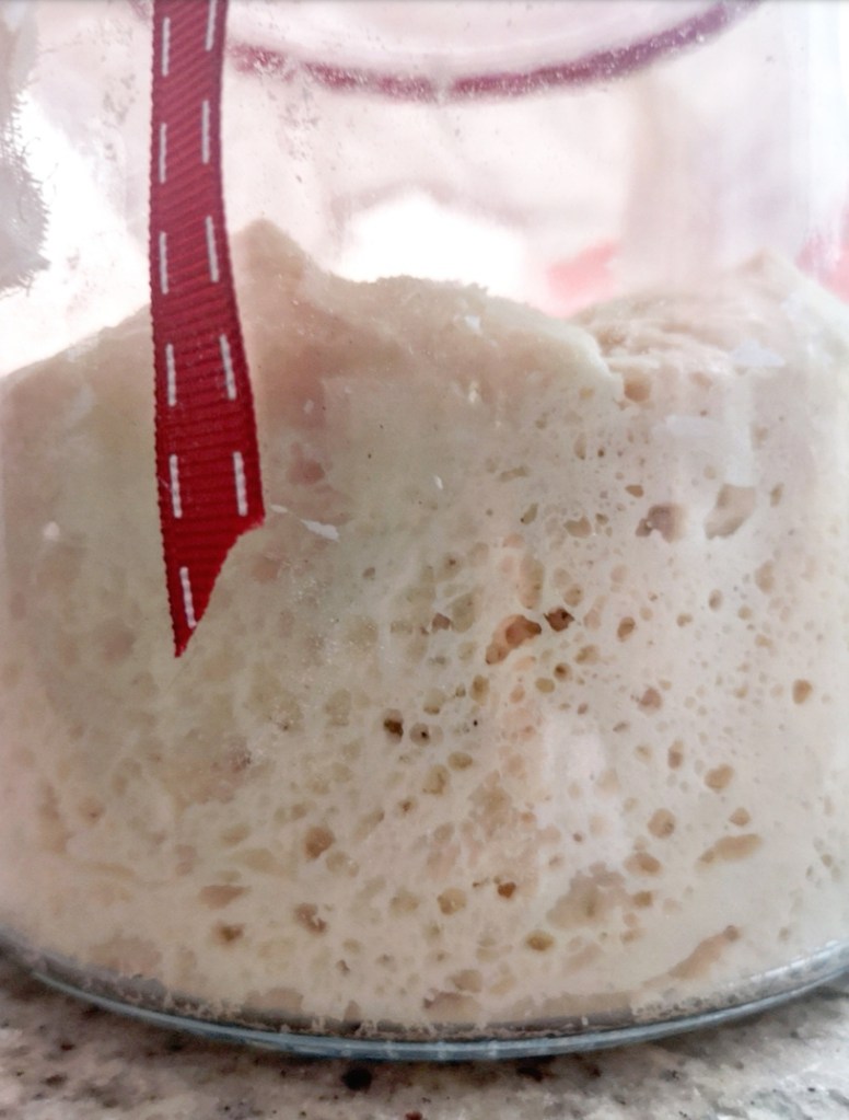 Piu’ andranno avanti i rinfreschi piu’ vedrete che il vostro composto diventa sempre piu’ compatto, meno appiccicoso e meno liquido. Sembrera’ sempre di piu’ una rete di tante bolle, quasi “spugnoso” a vedersi. Sara’ anche piu’ facile prelevarlo dal vaso per rinfrescarlo.