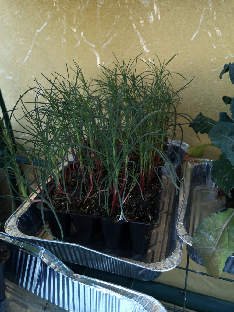 Come si vede dalla foto sono piantine ancora molto fragili, delicate e facile preda di merli, lumache o anche semplicemento di forte vento con il rischio che queste si allettino a terra. Considerando poi che fanno parte di quelle piante che presi piu’ di un mese fa…… le vedevo deboline.