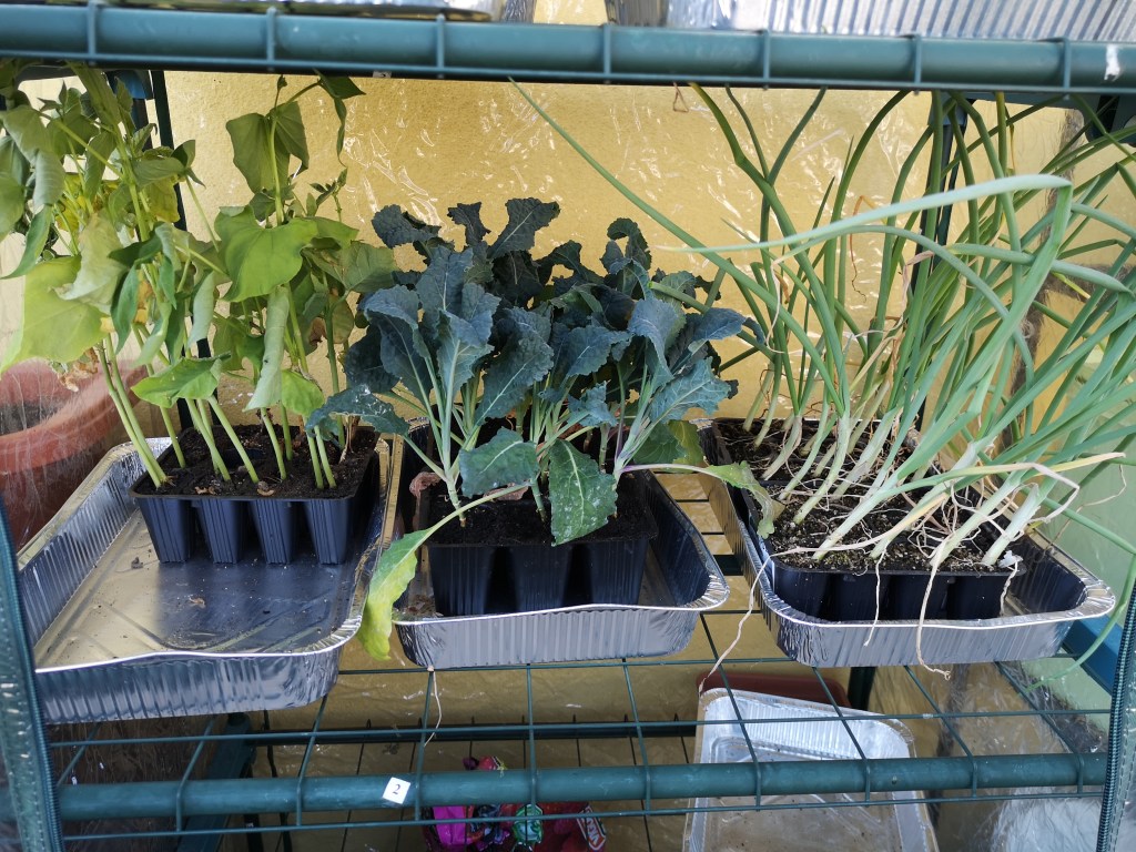 Nel terzo box ho deciso di mettere le mini cipolle e i cavoli neri. Ho fatto questo abbinamento perche’ la pianta di cavoli, a pieno sviluppo, diventa notevolmente voluminosa. Quindi ho abbinato piante di modeste dimensioni, che si sviluppano sotto terra come le cipolline a piante che hanno la massima voluminosita’ sopra. Cosi’ dovrei bilanciare i volumi, gli spazi evitando problemi. Nel mezzo vedete una vaschetta di fagiolini che mettero’ a terra nei giorni successivi.