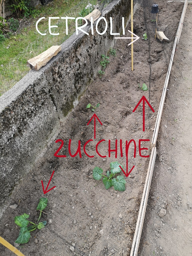 Come si vede, ho usato anche la sponda laterale che ho creato per zucchine e cetrioli. Spero in questo modo che le prime non mi invadano le altre piante come lo scorso anno. Da inesperta non sapevo a cosa sarei andata in contro.