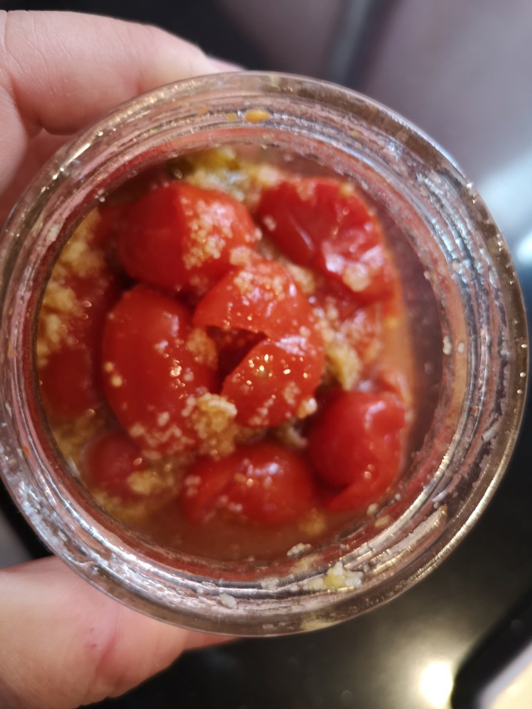 La mia prima ricetta del blog fatta con i miei pomodorini dello scorso anno. Sono Molto fiera della soluzione! sia come ricetta che come metodo di conservazione che consiglio a tutti!