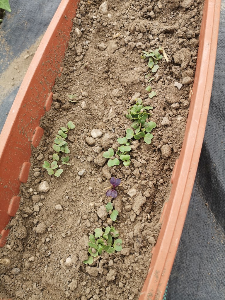 Un giorno, presa dallo sconforto e dalla rassegnazione, ho preso dei vasi che avevo giu’, li ho riempiti con terra dell’orto, SOLO questa non terriccio, ho tirato fuori quello che mi rimaneva dei semi che ho cercato di fare nascere in ogni modo e cosi’ senza grande precisione li ho seminati. Non sono stata piu’ di tanto li a vedere come seminarli al meglio, li ho semplicementi “buttati” nel terreno. Poi li ho lasciati nell’orto! posizionati tra i vari box, esposti come le piante e irrigati come le piante……..